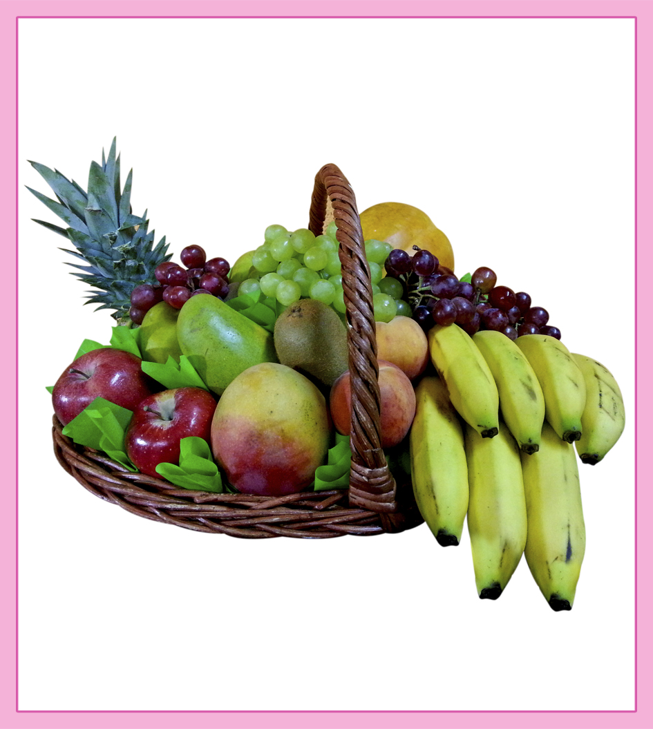 Canasta frutales compuesta por piña, manzanas, peras, kiwi, melón, duraznos, plátanos, uvas y mangos, seleccionadas y listas para enviar desde nuestra florería DF.